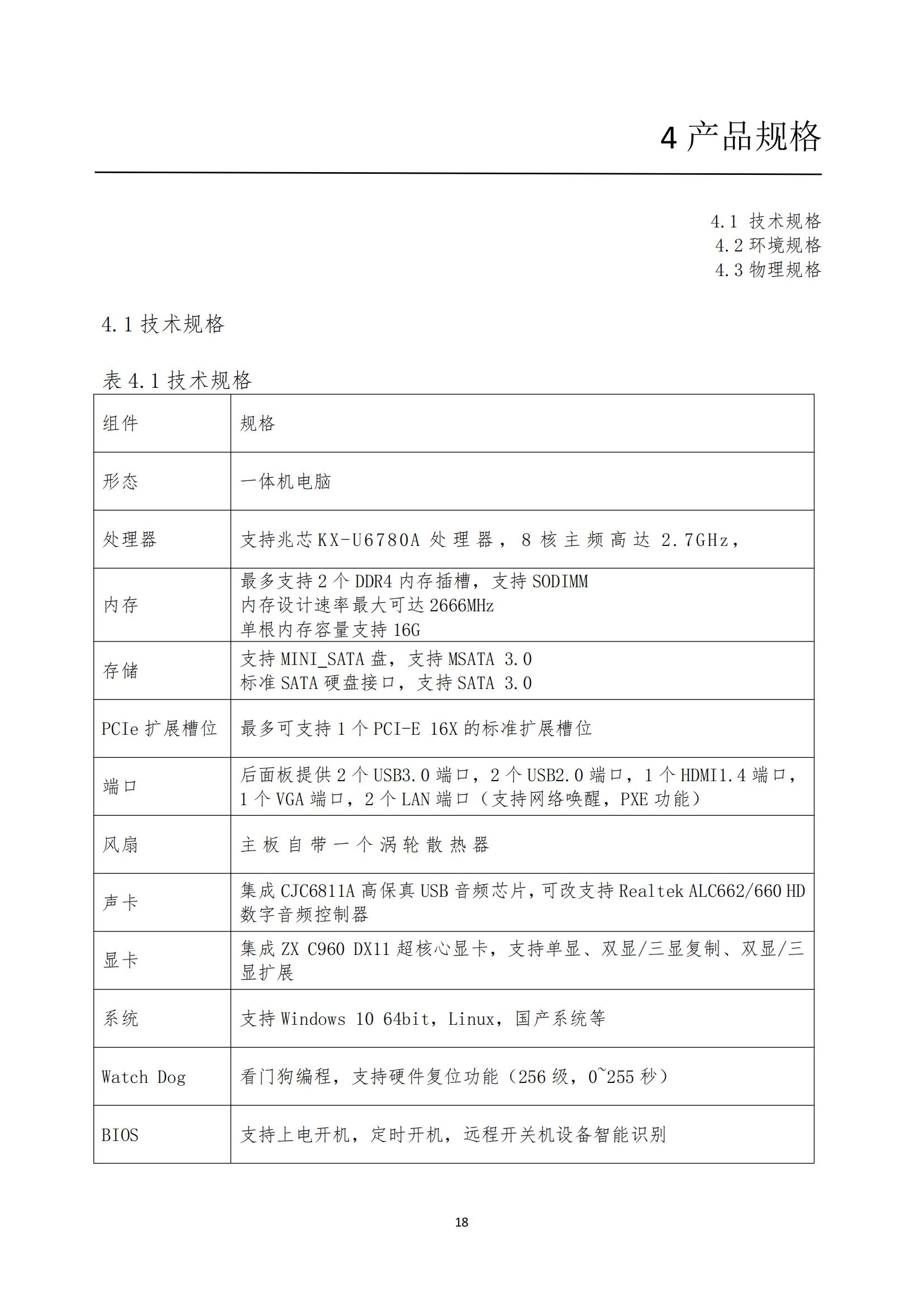 处理器 | 支持兆芯KX- U6780A处 理 器,8核主频高达2.7GH z |